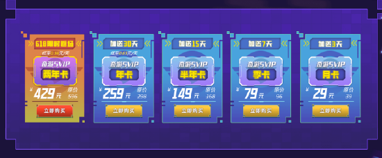 首先是这次奇游618活动,万众期待的两年卡回归,折算是17.875/月,超值价格,2022上半年最大力度折扣。