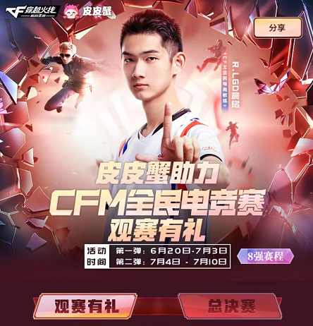 在6月20日至7月3日,下载并登录皮皮蟹语音,点击进入CFM全民电竞赛活动页面,即可参与活动。还能在热门语音房间和漂亮小姐姐一起观看比赛,聊游戏聊生活,遇见让你心动的那个Ta。