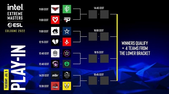 ESL在今日公布了IEM 科隆Play-In阶段的首轮对阵。比赛将在北京时间7月5日下午17:00正式开场。