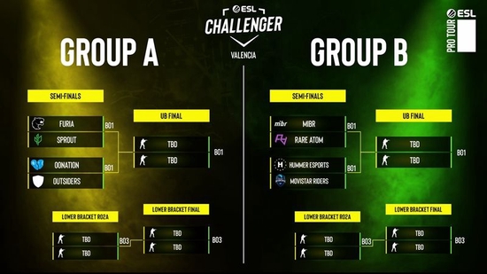 FURIA、VP、Sprout和00NATION被分在A组;RA与MIBR、Movistar Riders和HUMMER(另一支巴西战队)被划在B组。