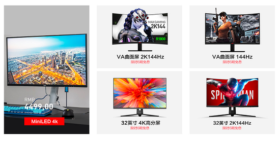 HKC则通过整合自身品牌资源,依托惠科集团四座G8.6液晶面板工厂的供应链优势。在2021年底领先行业推出了4K144Hz的MiniLED显示器产品。