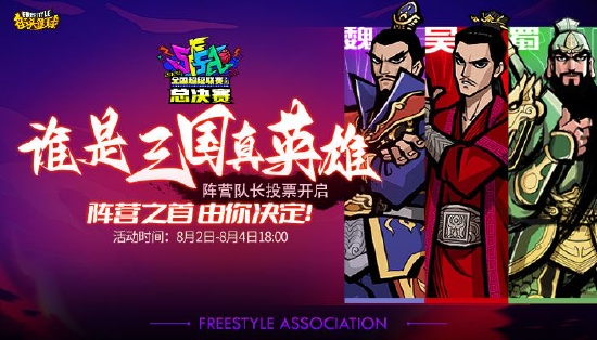 今年《街头篮球》总决赛的主题就是“谁是三国真英雄”,8月26日-8月28日在西安正式进行,阵营战将分为魏蜀吴3个阵营进行对抗,胜者获得阵营冠军,目前魏国阵营当中眼泪领先,蜀国阵营中小舞礼暂时领先,吴国阵营中绝对值遥遥领先,选出阵营队长之后将进行阵营选队,阵营胜出者将可以获得奖励。