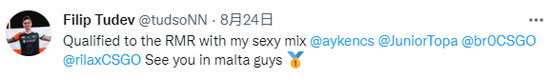 tudsoN曾经代表波兰队伍Anonymo出战上届Major的RMRFANTASY由tudsoN、ayken、br0、rilax以及Topa组成,经常关注FPL的观众或许会熟悉tudsoN和ayken这两个ID,这两兄弟也是FPL的常客,不过最近之前他们都被下放到了FPL-C。