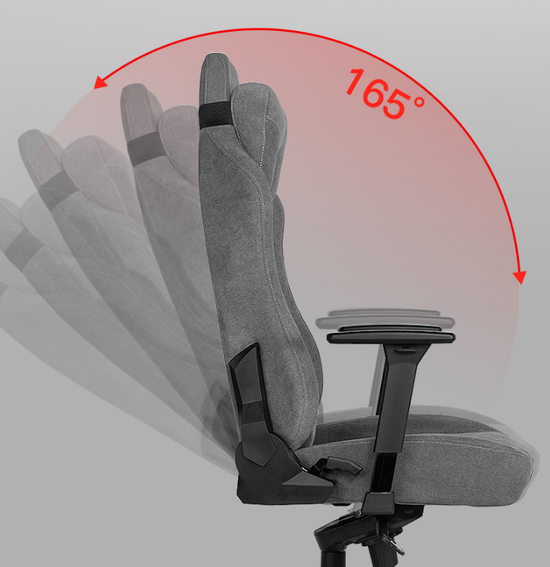 其次电竞椅符合人体工程学的设计,可以很好的贴合腰背曲线,还有头枕可以帮助撑住颈部和头部,还有腰枕可以帮助我们支撑背部,椅子宽大包裹性也很好,可以适应不同玩家的需求,即时是身材比较高大也不用担心坐着不舒服;电竞椅还有3D多维扶手,可以根据自己的喜好进行调节,极大的提高了游戏体验和舒适度。并且座椅的高度和斜度也是可以调节的,平时玩累了想要躺着休息的时候就可以把电竞椅调节到165°左右,适应不同的生活场景。