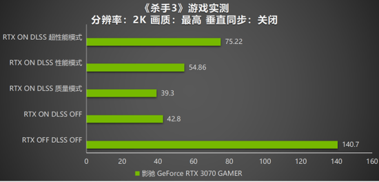 接下来让我们看看2k分辨率下,耕升 GeForce RTX 3070的表现吧!对比1080P分辨率,在2K分辨率下关闭所有的技术我们仍然能跑出 140.70FPS的成绩。在开启光线追踪技术、保持关闭DLSS 技术的情况下,帧数最高能达到42.80FPS。虽然画面质量有了很大的提升,但是游戏的流畅度却没有了保障。这时候需要DLSS 技术的加持。开启DLSS 技术 后,帧数最高可以达到134FPS,帧数上涨97%。和1080P的结果一样,由于游戏优化的问题,帧数存在一定的问题,后续将会优化。在开启光线追踪技术、开启DLSS 技术质量模式的条件下,分数为39.30FPS,和1080P并无区别。选择DLSS 性能模式的话,分数则会上涨到54.86FPS,游戏途中略有卡顿。最后一项数据为选择DLSS 超性能模式,该模式让玩家在开启光线追踪技术的情况下,帧数仍然能达到75.22FPS的好成绩。由此看出,这次《杀手3》更新所增加的技术为玩家提供了更好的游戏体验。推荐玩家在开启光线追踪技术时同时,也开启NVIDIA DLSS技术。在这两项技术的加持下,玩家可以体验到在损失较少画面质量的情况下,大幅度提高游戏性能,保持流畅的游戏体验。