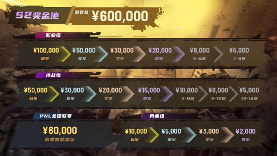 PPL S2总奖金¥600,000,其中不仅有对应名次的赛果奖励,还包含完美平台为战队提供的丰厚扶持基金,帮助更多战队进行日常运营、训练,使其逐渐步入正轨,减少后顾之忧。
