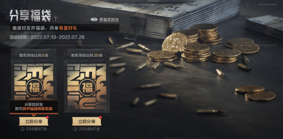 活动期间完成指定任务即可触发福袋,将福袋分享给好友后即可拆开,好友也可一同拆福袋,海量物资奖励等你领取。