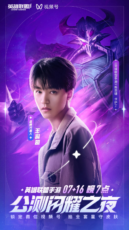 此外,7月16日晚上19点,《英雄联盟手游》微信视频号将开启“公测闪耀之夜”直播,王俊凯携手明星嘉宾,带来精彩的现场开黑直播,参与直播互动,还有机会获得皮肤好礼,一切精彩尽在星光公测闪耀之夜!