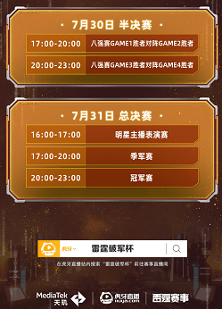 MediaTek天玑独家冠名虎牙雷霆破军杯,7月19日正式开赛天玑×雷霆破军杯S4是由MediaTek天玑与虎牙直播平台共同发起,比赛时间为7月19日至7月31日。