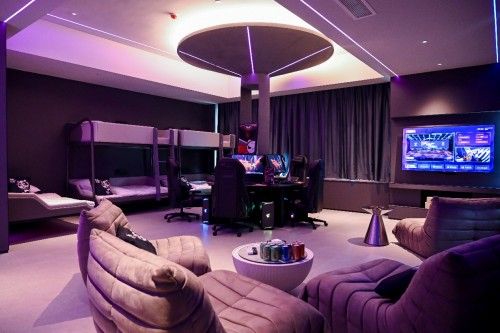 区别于传统,竞鹅酒店打破了传统酒店“大堂”的设计概念,动线设计中埋藏了大量电竞地图元素,并配备了种类齐全的电竞设备供客人体验。你可以在VEEGY的引导下,进行手速、眼力、策略等5大维度职业级电竞天赋测试,沉浸式体验电竞选手的训练方式,挑战自身的电竞能力极限,让每一位入住的用户都可以尽情享受电竞带来的乐趣。