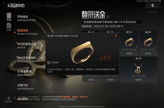 透过游戏公屏上的字幕,玩家对这位“欧皇”的喜悦感同身受,周大福17916系列22K金饰在游戏中百分百全形态进驻新规游戏,随着屏幕内的一道金光闪过,象征游戏体验巅峰的“欧皇时刻”降临在了暗区先锋们的身上,“开金”成就也就此达成。