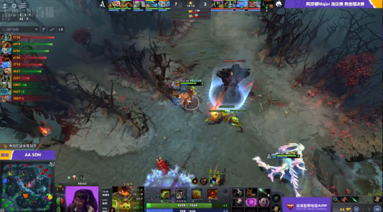18分钟Aster控下一代肉山,虚空带盾。19分钟剑圣在野外树林埋伏到大锤,开斩接转将其击杀,随后虚空开大也带走了剑圣,而蓝猫滚切入配合玛尔斯大招击杀戴泽,小小跳刀二连再留蓝猫,死亡先知小小冲塔再杀玛尔斯。Spirit三核阵亡。