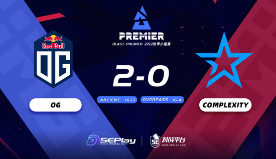 BLAST PREMIER 2022秋季小组赛淘汰赛段:OG对阵complexity。图一OG选择的远古遗迹,面对相对不熟悉地图的COL进行着有侵略性的打法,成功打败对手拿下选图。来到Overpass,OG延续手感防守依旧碾压COL,degster超人级表现一波带走COL拿下比赛。