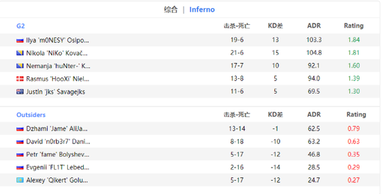 图一率先来到VP的选图Inferno,手枪局VP抱团出中路遭遇G2中路4人重防,G2赢下手枪局,此后G2稳扎稳打,HooXi开局便手感火热,连续完成击杀,G2拿到4-0的开局。第五回合的长枪局,m0NESY在二楼偷掉做默认的FL1T,随后仿佛小镇镇长kennys附体,在包点来回peek,一波三杀顶住VP的A区抱团进攻,随后的anti eco中m0NESY的大狙补防在棺材位双杀力挽狂澜,拒绝被eco翻盘。第七回合的长枪局HooXi和NiKo在B区双人防守做出了教科书般的配合,三箱上的niko四杀赢下长枪局,G27-0开局。