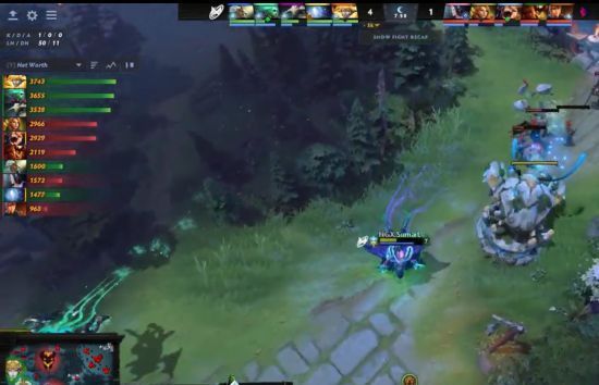 11分钟以太谜团拉大击杀大锤,但是Nigma众人赶来将屠夫熊战士发条三人击杀,仅11分钟,Nigma团队经济已经领先了夸张的8K。