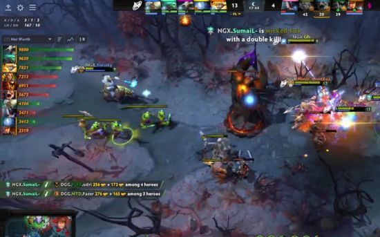15分钟Nigma打肉山,DGG赶来,但是谜团致命空大,虽然击杀了美杜莎,但是屠夫熊战士发条三人陆续阵亡。