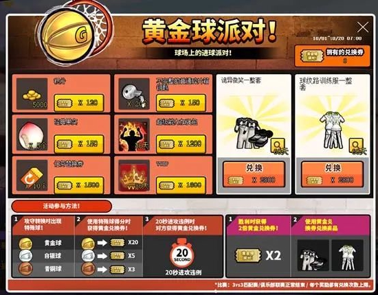 持有黄金球,出现20秒违例时,对方获得黄金兑换券。