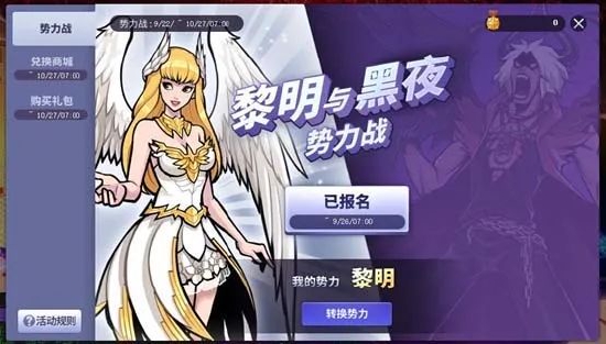 9月26日上午7点后正式开启新势力战比赛阶段。所有报名玩家会被分配至随机势力(黎明或黑夜)。