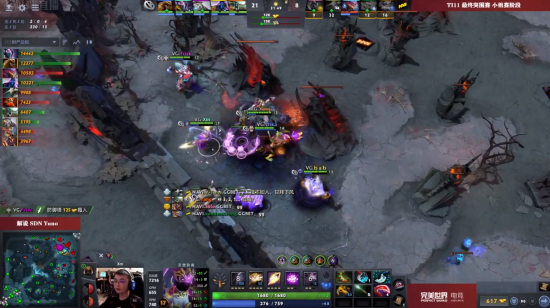38分钟牛头留到拍拍,剑圣跟上输出打掉拍拍的盾。随后沉默开大保护拍拍撤退并击杀了牛头,剑圣转死了小小,老鹿赶到战场击杀了巫妖,还留到了剑圣击杀。