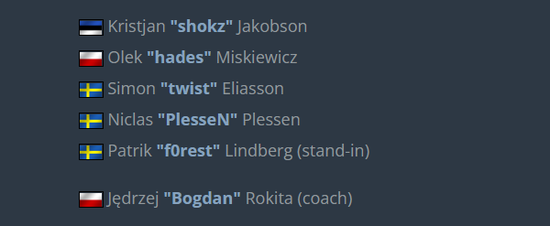 值得注意的是,目前世界排名第十的NIP战队也受邀参加了这场比赛。先前NIP队员hampus曾表示,很期待能够参加这场比赛。因为除了NIP之外,其它战队里头不乏瑞典老牌CS选手:有f0rest、flusha和JW等等,都是他儿时耳熟能详的明星选手。