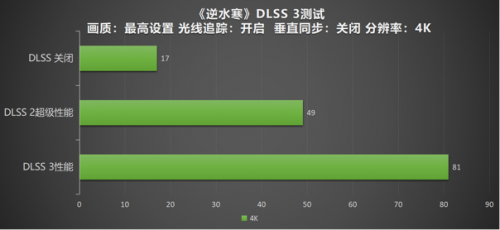 在4K分辨率下打开光线追踪技术以及画质设置为最高设置时,《逆水寒》的帧数仅仅达到了17帧。这意味如果玩家追求画质的话,将完全无法流畅的进行游戏了。但是NVIDIA DLSS 3的加入让其能够享有高于传统渲染4倍的性能以及更快的响应速度,这让《逆水寒》游戏内画面表现力大幅增加。开启NVIDIA DLSS 3模式后,帧数均达到了50帧以上,且最高能跑到81帧这样优异数据。这将意味着,玩家们将能够在《逆水寒》中享受到宛如现实世界一般的绝美画面的同时,保持超流畅的游戏体验。