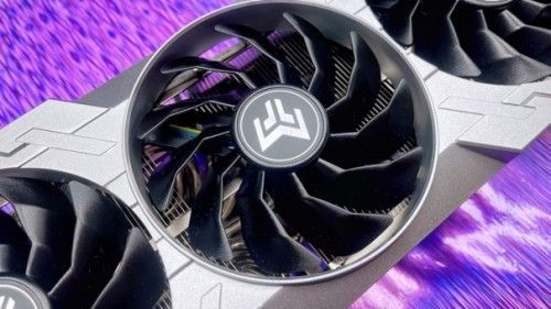 影驰 GeForce RTX 4090 金属大师 OC由3个同样大小的102mm异形风扇组成,采用了二代经改良角度的11叶静霜扇叶,20mm厚度除了增大进风量进一步稳定显卡温度,加强核心动态频率的提升幅度,同时达到了进一步减少噪音的目的。同样支持智能启停。