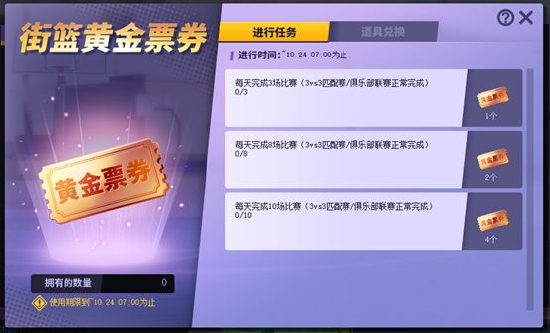 10月20日服务器维护后~10月24日7点,玩家每日完成任务获得黄金票券兑换奖励。