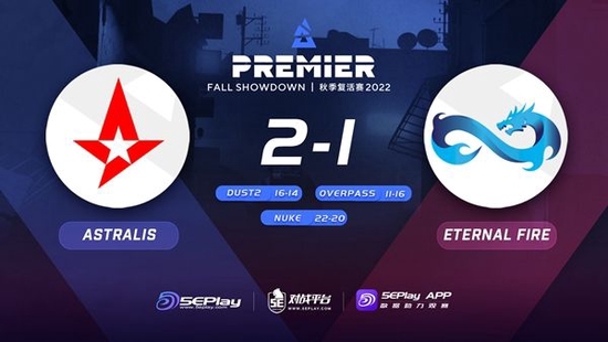 Astralis 2-1 Eternal Fire(Dust2 16-14;Overpass 11-16;Nuke 22-20)