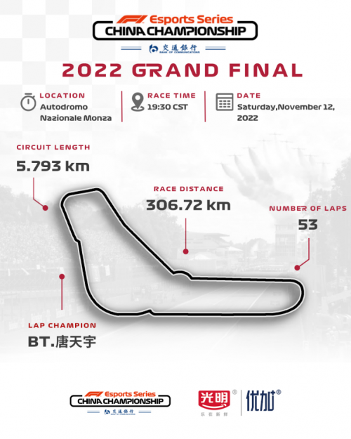 2022赛季F1电竞中国冠军赛职业联赛收官战将于11月12日打响,周六晚19:30~22:00一同锁定F1电竞中国冠军赛官方公众号,见证年度车队总冠军与所有荣誉的诞生。