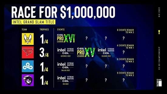 目前FaZe依然在本赛季大满贯征程中领跑。只需在未来4次EPT赛事中拿下一次冠军,他们即可获得这一殊荣。不过,留给FaZe的容错已经越来越少了。