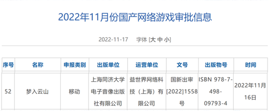 11月17日,国产游戏版号名单公布,70款游戏获批。益世界旗下《梦入云山》取得版号!