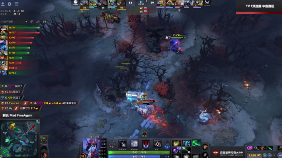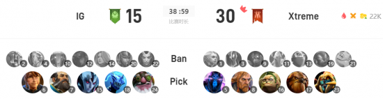 18分钟,XG快速控掉第一代Roshan盾,经济差来到5k,iG只得带线牵制等待大圣的下一步装备。