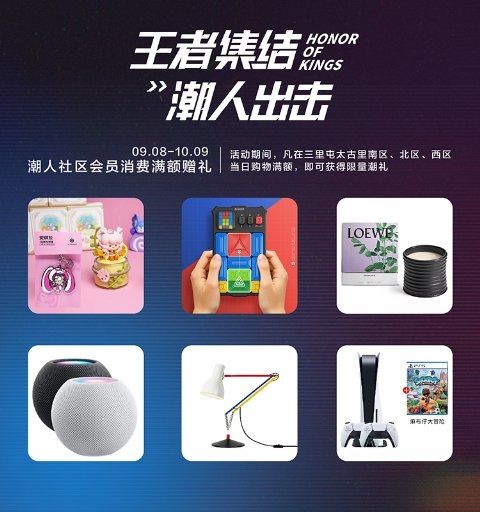 「三里屯太古里 – 2022 潮人出击|王者荣耀主题互动展」活动时间从2022年9月8日起,横跨中秋与国庆假期,持续时间长达一个月。此次三里屯太古里携手王者荣耀游戏IP,创新打造含有新社交、新社群、新消费场景三大维度的沉浸式主题活动。 三里屯太古里打破游戏社交仅存在于线上的局限,引领玩家来到线下潮流街区;依托于电竞群体兴趣的共性,开创潮流消费新社群;并且通过游戏IP衍生丰富的活动及视效体验,结合已有的潮流零售,为消费者提供全新的主题性消费场景;通过呈现极具观赏性、互动性的游戏化新体验场景,既为王者荣耀的粉丝带来游戏现实化的超凡经历,又为三里屯太古里街区的潮人们带来有趣新鲜的打卡体验。