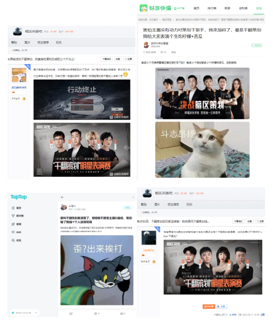 暗区的普通玩家们听闻此事后也瞬间嗨爆,在贴吧、Taptap、好游快爆等玩家社区纷纷站队发表自己的观点,表示想看策划翻车、期待主播暴揍策划。