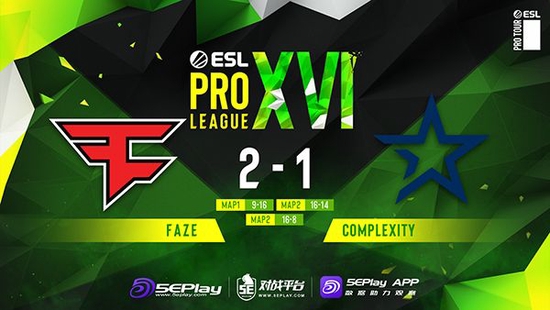 EPL S16:淘汰赛第二场比赛,FaZe对阵Complexity。图一死亡游乐园,上半场FaZe和COL打的有来有回,但下半场hallzerk的大狙连续发挥让FaZe招架不住,最终输掉了图一。图二炼狱小镇Grim手感火热连续拿到多杀奠定了上半场的优势,但下半场却没能一鼓作气拿下比赛,被FaZe反超比分以微弱的优势拿下了图二。图三核子危机,上半场FaZe拿到10-5的优势比分后,下半场迅速结束战斗赢下了整个BO3。