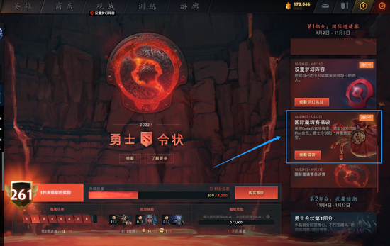 北京时间10月27日,DOTA2内推出了2022年国际邀请赛福袋,内包含:为期一个月的刀塔Plus;一件1级勇士令状,已拥有勇士令状的话可以兑换24级勇士等级;自行选择商城中任意一件在售的至宝。