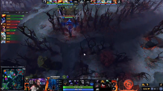 15分钟Liquid打肉山,Aster赶来,小娜迦开大却被滚滚开大打断,火女带盾,而Aster包抄后面赶来,黑弓数箭齐发先杀尸王再点残夜魔,獸直接冲到夜魔脸上但是夜魔切臂章残血反杀了獸,但是Liquid带盾火女走不掉连续阵亡两次。