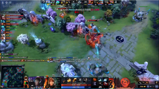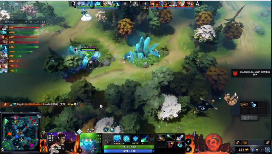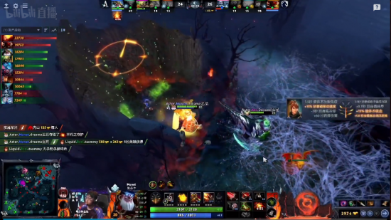 25分钟Liquid打肉山,Aster赶来,滚滚开大掩护火女拿下肉山,娜迦开大抢下魔晶,但是Liquid众人杀出将小娜迦冰女兽王三人击杀,之后Liquid拉开了将近1W的团队经济。