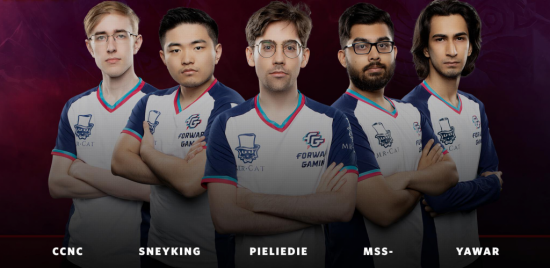 当初,Forward Gaming是一支在TI8后成立的战队,通过北美预选赛成功打进TI9,当时队内选手包括Yawar、CCnC、Sneyking、MSS和pieliedie,教练为Aui_2000。但因为经济困难,他们在TI9前放弃赞助,选手们最终以Newbee的名字参加了那次TI,拿到了9~12名的成绩。