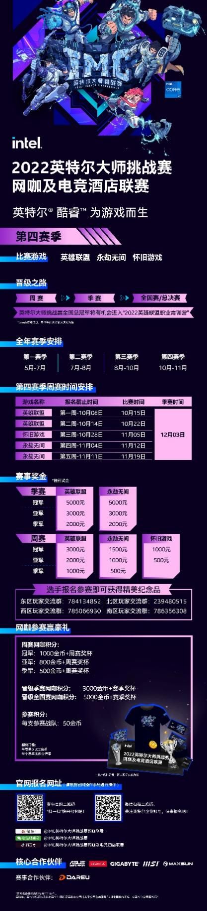 科技并行,电竞助力,2022英特尔大师挑战赛网咖及电竞酒店联赛第四季全面开战,我们期待,热爱电竞的你能站上舞台之颠。