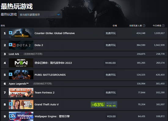而最近不止是吃鸡一哥XDD沉迷于DOTA2,借着在新加坡举办的TI11的热度,最近DOTA2玩家在线数量提升明显,steam最高在线峰值突破了100万,与正在里约举办Major的CS:GO并驾齐驱,继续占据着STEAM在线榜的前二。