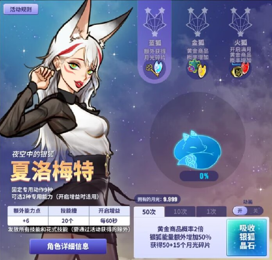 11.24全新版本将会上线以下活动:夜空的的银狐-夏洛梅特(新角色抽取活动),夏洛梅特的限时比赛任务(永久+3道具),水晶的神秘力量以及分类达人,自由就是唯一的规则,我们在球场上等你来战!