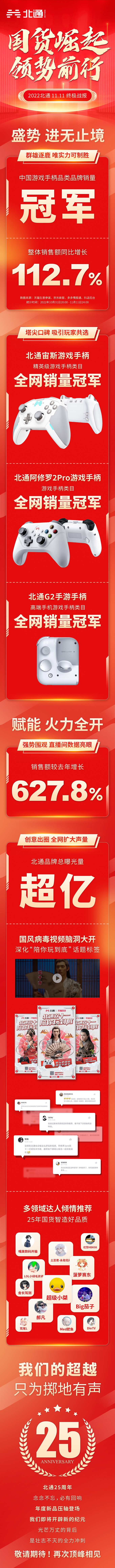 优异的红榜与数据,离不开消费者的认可与支持,北通25年,始终保持着赤子之心,以硬产品、真实力,回馈每一位玩家。