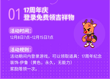 活动一:17周年庆登录免费领吉祥物