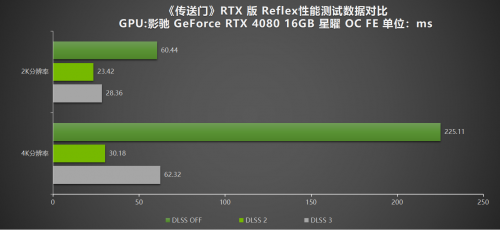 通过测试,我们可以得到一些结论。在关闭NVIDIA Reflex的情况下,游戏延迟相对会高,最高达到229ms。高帧率会使得玩家在游戏时的移动变得卡顿,操作也将变得更加缓慢,从而导致游戏体验变得不佳。建议玩家在游戏感受到高延迟时,开启DLSS 2/3的同时搭配开启NVIDIA Reflex,玩家的游戏体验感将会有明显的改变。在DLSS 2模式下,4K分辨率下的延迟最低达到30.18ms;而2K分辨率下延迟最低达到23.42ms。全新升级后的DLSS 3模式,在4K分辨率下延迟最低达到62.32;2K分辨率下延迟最低达到28.36ms。开启NVIDIA Reflex后,系统延迟将会有一个明显的降低,该感受在动作类或者是射击类游戏中将会更加明显。开启NVIDIA Reflex后的射击精准度将会随着延迟的降低而得到提升,能帮助玩家更易集中目标,动作的流畅度也将给与玩家的游戏体验达到更好的效果。