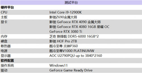 本次测试采用的是影驰 GeForce RTX 4090 金属大师、影驰 GeForce RTX 4080 16GB 星曜 OC、GeForce RTX 3080 Ti 三款不同型号GPU来测试《传送门》RTX版的实际游戏性能,数据对比包括:光线追踪技术、DLSS 2和 DLSS 3技术、Reflex 技术等等。