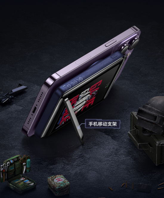 对于不支持无线充电的 iPhone 用户,它也可以提供 PD 20W 的有线快充,同样 30 分钟即可为手机充满至 50% 的电量。在这款无线快充移动电源上,我们还加入了支架功能的小设计,这样玩家充电时观看大神直播,即可解放双手。