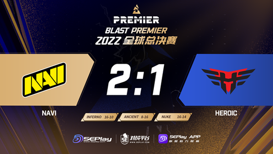 BLAST Premier 2022 全球总决赛 B组败者组比赛,刚被Vitality击溃的NaVi转头就在败者组与被OG击败的Heroic相遇,经过三张图的鏖战,最终NaVi击败Heroic晋级1/4淘汰赛,而Heroic则只能遗憾离场。