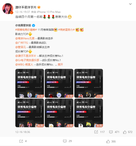 此外,在微博电竞价值榜-解说主持成长榜的月度评奖中,潇潇从8月份到11月份连续4个月登顶榜首,也创下了连续霸榜的最长记录。可以说今年是潇潇收获满满的一年。