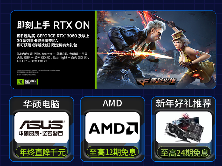 除了显示器这一“电竞房”视觉C位,华硕TUF GAMING B660M重炮手主板搭配Intel i7-12700f处理器,买套装京东更划算,主板享1年换新,到手谷3369元。技嘉魔鹰GeForce RTX3060系列显卡新品上市,享6期免息,到手价3699元。更有电源、内存条、散热器、固态硬盘等装备可选,满足玩家们提供自己动手的成就感。